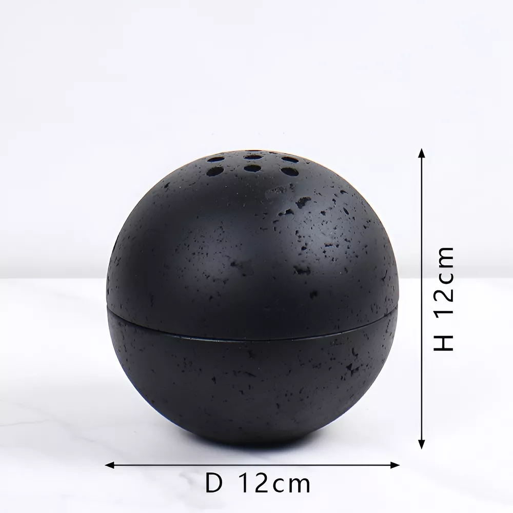 Not just a functional incense burner, this piece doubles as a work of art that enhances your space. The unique travertine stone, with its naturally occurring holes, creates a captivating texture that highlights the beauty of nature. Each burner is carefully handmade, giving it a personal touch that makes it unlike any other. Its round shape and smooth finish make it a versatile decoration that complements various interior styles, from minimalist to modern.